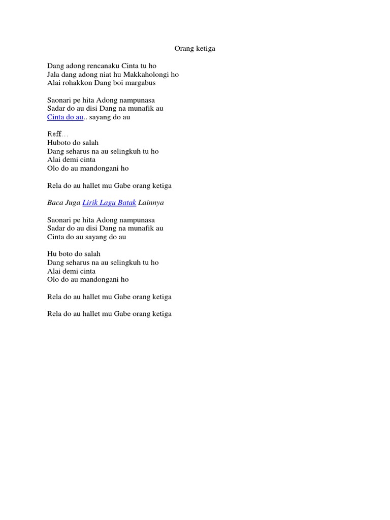 Lirik Lagu Batak Orang Ketiga By Nabasa Trio